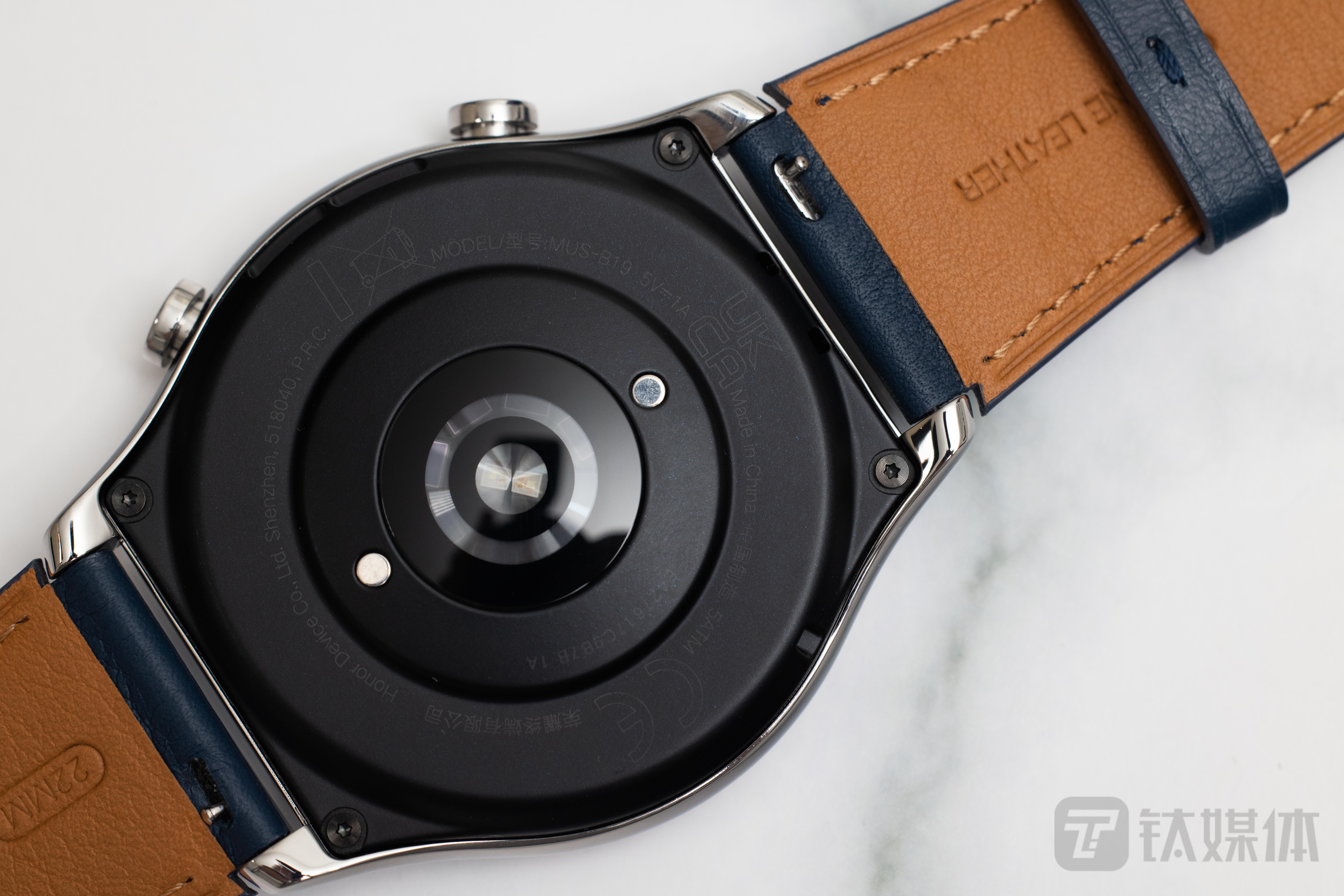 從外觀設(shè)計(jì)方面來說,榮耀手表GS 3十分簡(jiǎn)約,表殼上除了和雙表冠之外,沒有任何開孔,一體性極強(qiáng),搭配上皮質(zhì)的表帶,確實(shí)符合其“輕商務(wù)”的定位特性。
