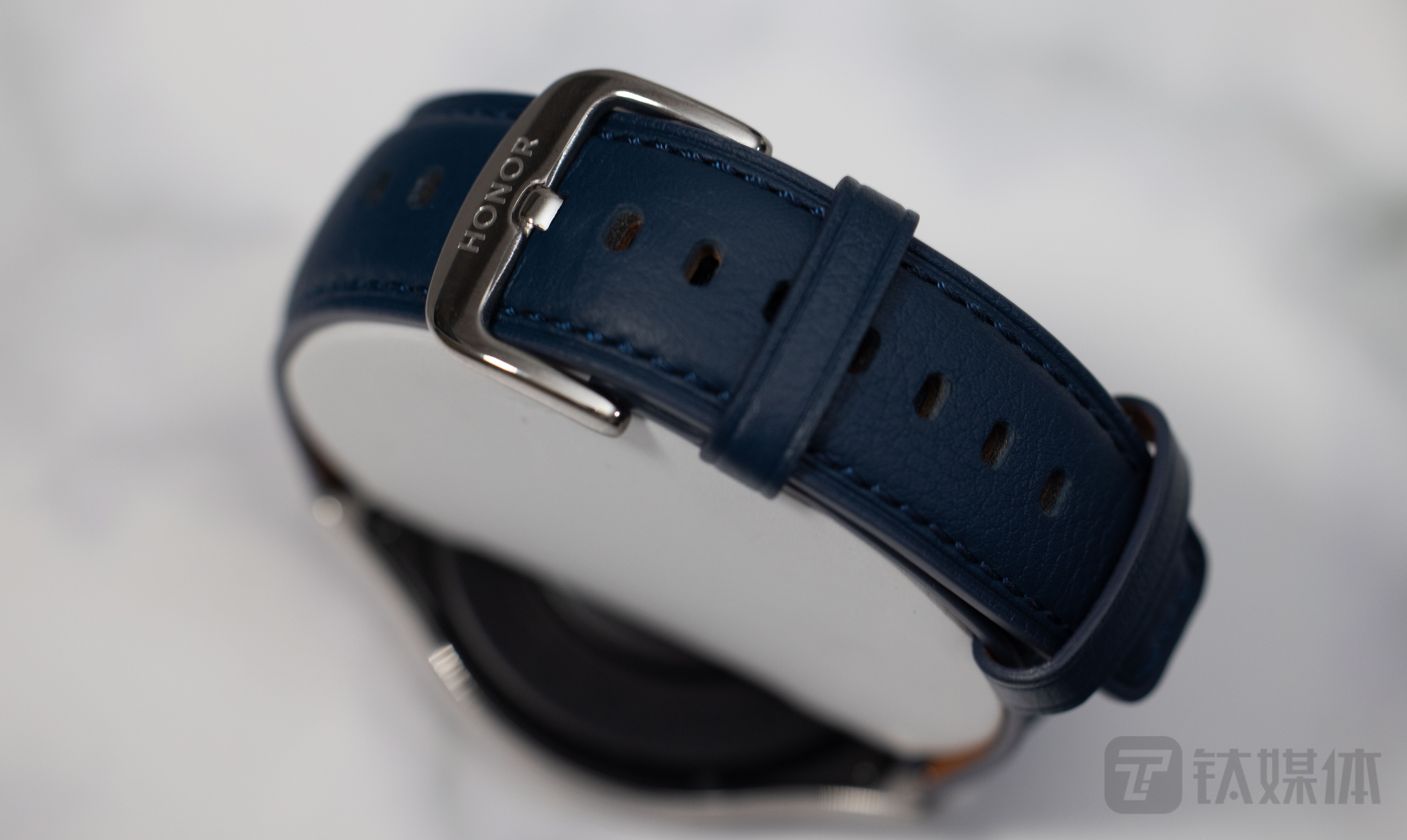 鈦媒體App拿到的是環(huán)球遠(yuǎn)航主題版本的榮耀手表GS 3。這款手表采用的是,金屬材質(zhì)的表殼,搭配藍(lán)色Nappa頭層小牛皮材質(zhì)的表帶。藍(lán)色皮帶設(shè)計(jì),搭配初始狀態(tài)下“潛航時(shí)代”的表盤,整體海洋風(fēng)格十足,十分貼合“環(huán)球遠(yuǎn)航”這一款式主題。