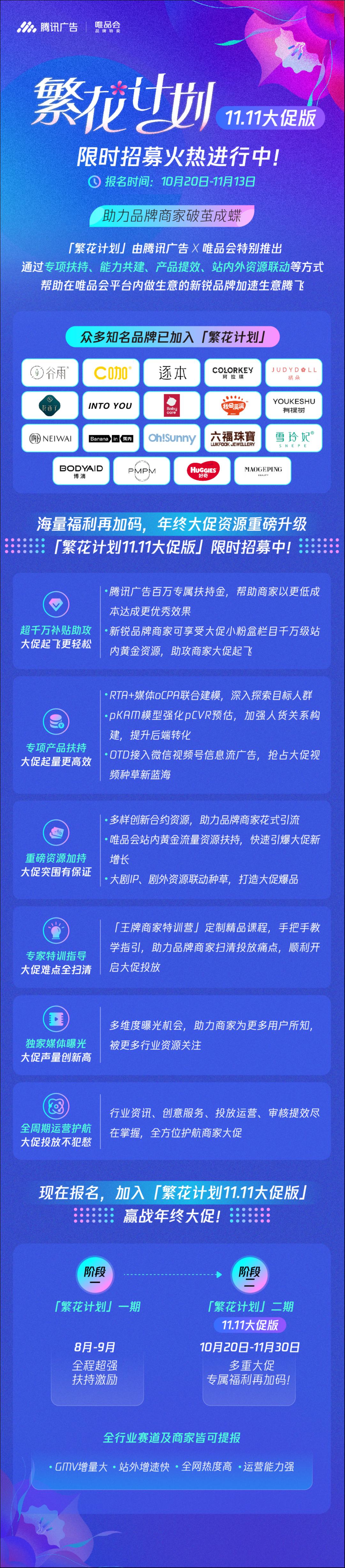正是以上“試運營”階段,幾個頭部品牌無論從曝光到增長上的成績,才讓騰訊廣告和唯品會更大范圍內(nèi)推進繁花計劃。
