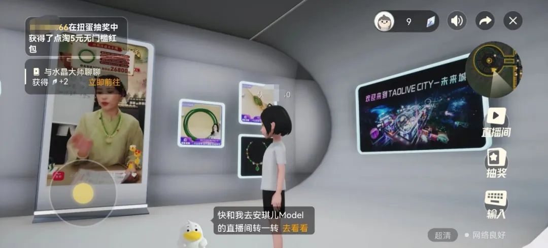比如今年雙11,淘寶就帶元宇宙電商邁出了新的一步。在淘寶的虛擬電商空間“未來城”里,用戶可以用自己淘寶人生的虛擬人進(jìn)去看直播帶貨,每個(gè)虛擬直播廳里還有能夠點(diǎn)擊購買的商品展示。