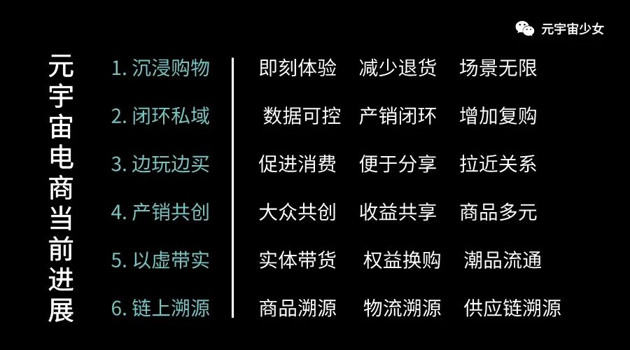 如今,基于區(qū)塊鏈技術(shù)的數(shù)字人民幣已成為中國數(shù)字經(jīng)濟(jì)新基建,隨著五部委重磅發(fā)文,虛擬現(xiàn)實(shí)正成為數(shù)字經(jīng)濟(jì)的重心。當(dāng)經(jīng)濟(jì)鏈條和沉浸世界走向交匯,就是元宇宙電商最終的樣子:人們可以用一個(gè)ID,隨時(shí)隨地通過數(shù)字分身沉浸式體驗(yàn)全球商品,空間皆場、物物可買、人人可賣。比如賣才藝,我在元宇宙跨越大西洋給你表演脫口秀賺錢;比如發(fā)音樂專輯,沒有平臺(tái)抽成粉絲經(jīng)濟(jì)就夠手藝人活著。