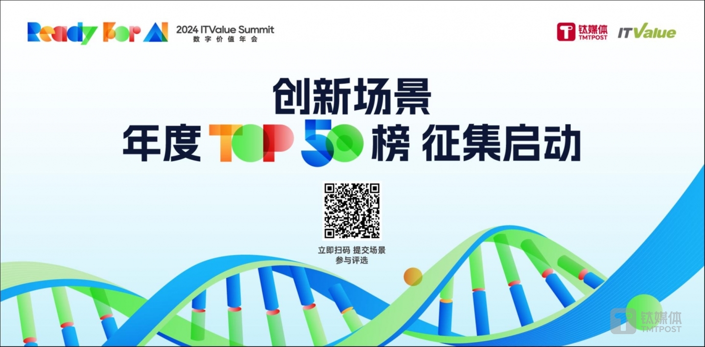 今年 9 月11~14日,我們希望在鈦媒體「 ITvalue 數(shù)字價(jià)值年會(huì)」上,通過(guò)榜單的形式,公布本年度符合: 新技術(shù)、新領(lǐng)域或新思路,同時(shí)具備實(shí)際應(yīng)用價(jià)值的50個(gè)「年度創(chuàng)新場(chǎng)景」。