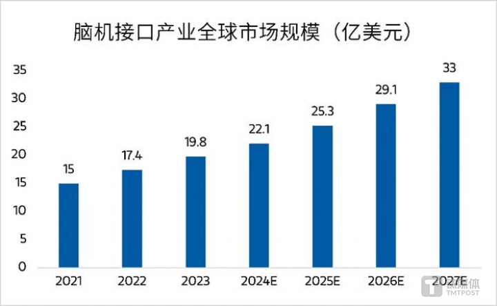 據(jù)國際市場研究機構IMARC Groupe統(tǒng)計,2023年腦機接口市場規(guī)模為19.8億美元,預計到2027年有望達到33億美元,復合年均增長率CAGR為14%。東方證券稱,未來BCI的應用范圍將逐步從醫(yī)療拓展到非醫(yī)療領域,將在2023至2032年進入應用普及期,市場規(guī)模有望實現(xiàn)顯著增長。