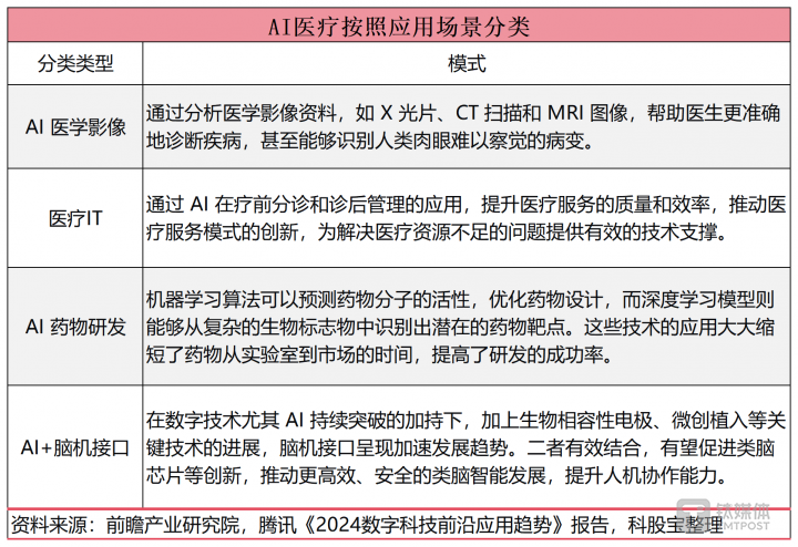 與傳統(tǒng)信息化更新不同,AI在提高醫(yī)療服務質(zhì)量、優(yōu)化資源配置、降低成本等方面存在巨大潛力。具體來看,可分為兩類: