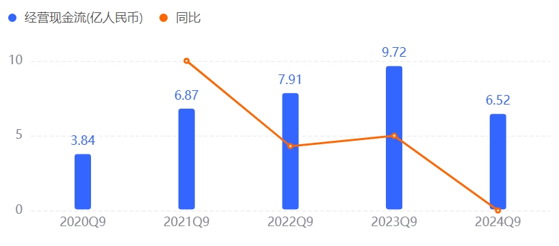 同時(shí),在當(dāng)前服裝市場競爭激烈、需求波動(dòng)的情況下,將大量資金鎖定在固定資產(chǎn)上,會(huì)降低公司資產(chǎn)的靈活性和流動(dòng)性。一旦市場環(huán)境發(fā)生變化,公司難以迅速調(diào)整戰(zhàn)略,應(yīng)對(duì)風(fēng)險(xiǎn)的能力將被削弱。2024年前三季度,比音勒芬的經(jīng)營性現(xiàn)金流凈額為6.52億,較去年同期的9.72億驟降32.98%。