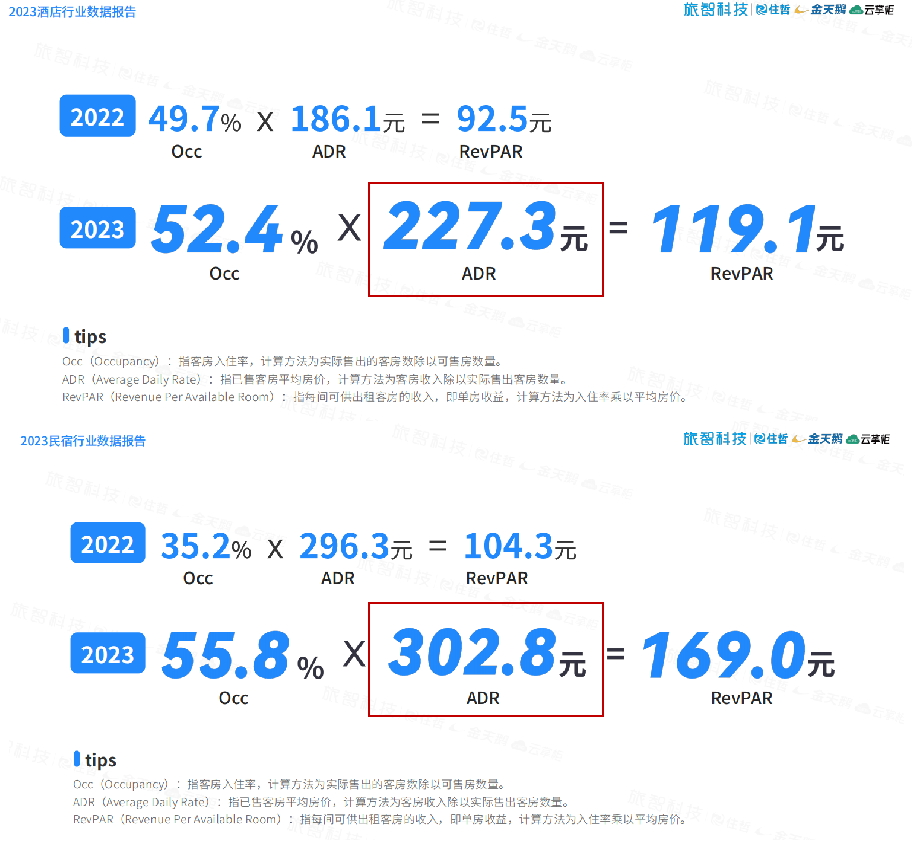 從行業(yè)分析數(shù)據(jù)來看,2023年酒店行業(yè)ADR為296.3元、入住率為35.2%;而民宿整體入住率達到55.8%、ADR超過300元,途家民宿在報告中也曾提出,約70%的旅客表示,他們愿意為提供特色體驗的民宿支付更高的價格。