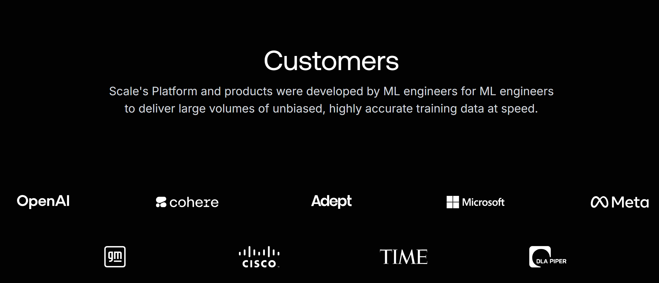 Scale AI在其官網(wǎng)列出的部分客戶名單 圖源:Scale AI