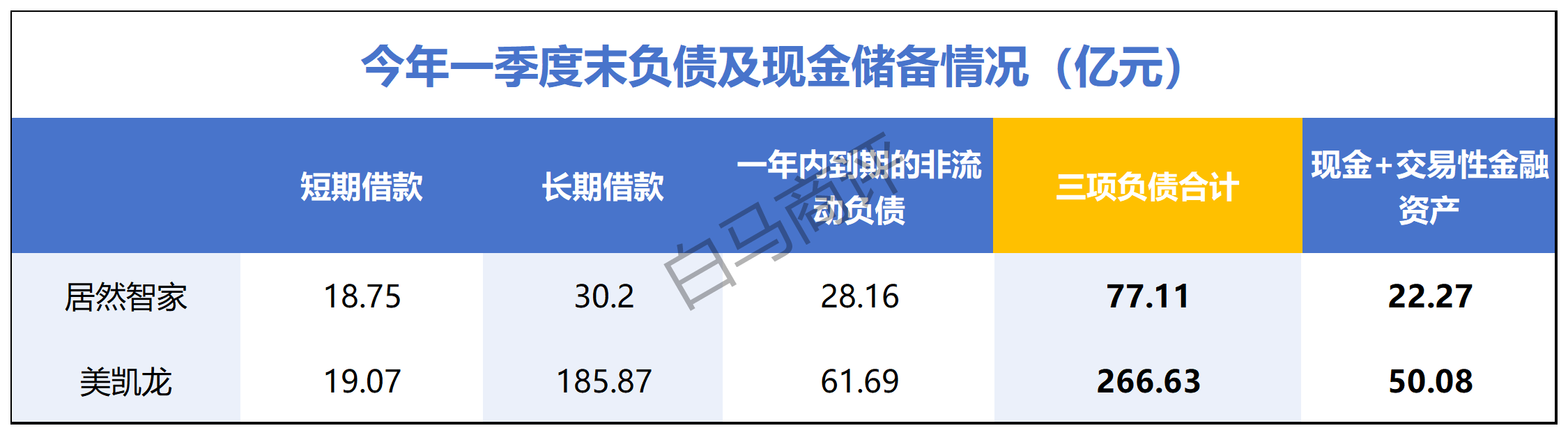 今年一季度末,居然智家短期借款、長期借款、一年內(nèi)到期的非流動負債三項合計為77.11億元,賬上現(xiàn)金和交易性金融資產(chǎn)合計僅為22.27億元,缺口超過50億元;美凱龍三項負債合計266.63億元,現(xiàn)金及交易性金融資產(chǎn)合計50.08億元,缺口更是超過200億元。