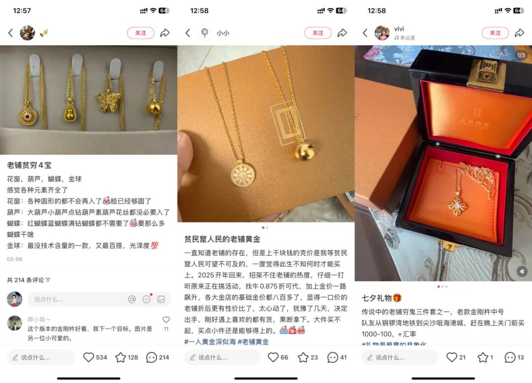 對(duì)于暢暢這樣的用戶來(lái)說,老鋪的金飾在今年有非常顯著的稀缺性,“是一款戴得出去的黃金飾品”,她們?cè)敢鉃樵O(shè)計(jì)和工藝多付一點(diǎn)溢價(jià),也愿意去排隊(duì)選購(gòu)。