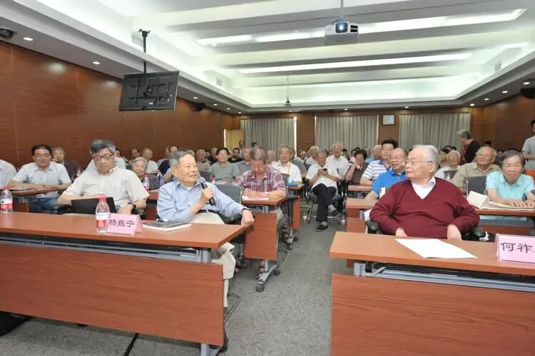 何祚庥院士(前排右一)90壽辰學術研討會現場,楊振寧先生講話。/受訪者供圖