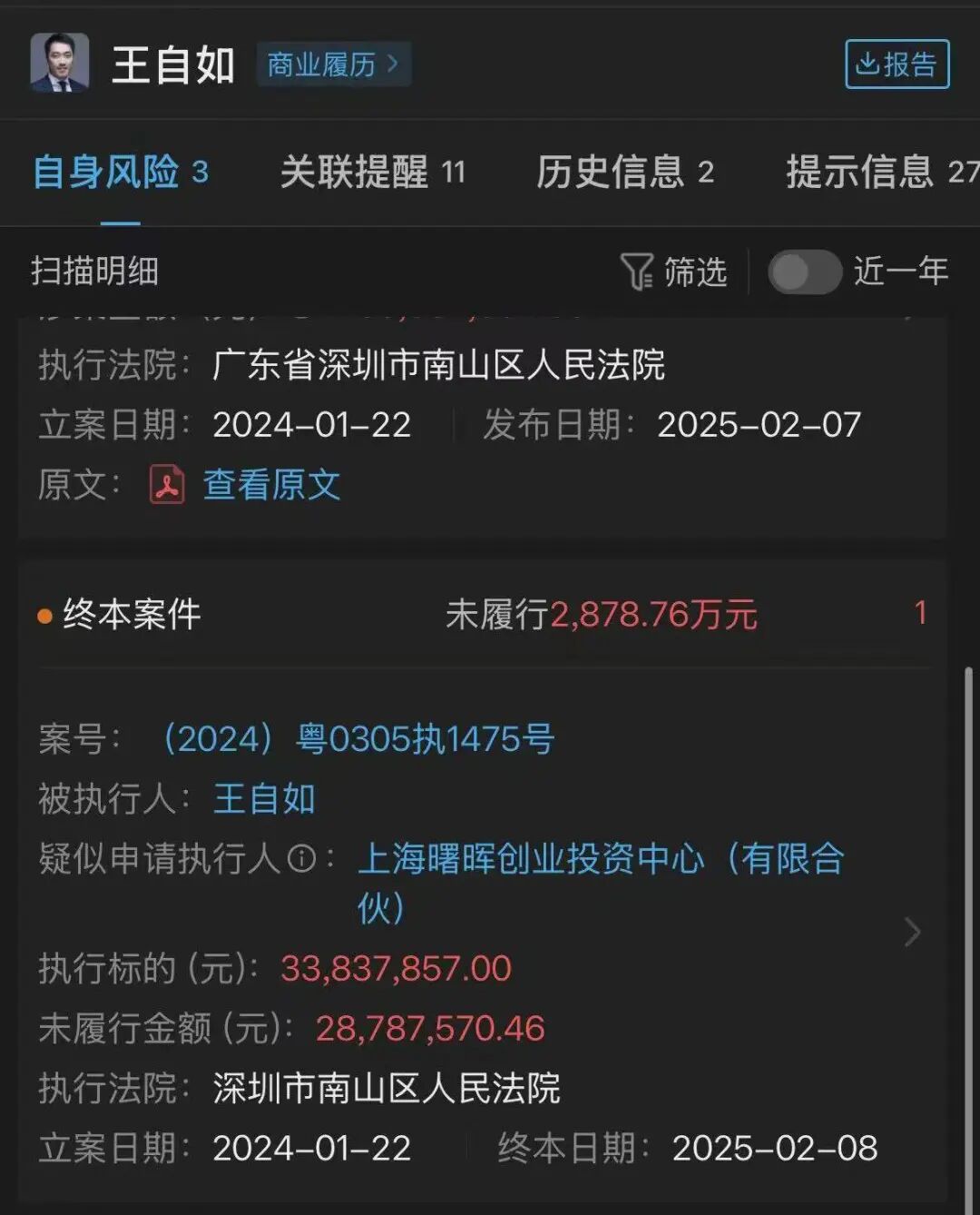 雪上加霜的是,2024年初,王自如因ZEALER對(duì)賭失敗引發(fā)的債務(wù)問(wèn)題曝光——中國(guó)執(zhí)行信息公開(kāi)網(wǎng)顯示,他累計(jì)被強(qiáng)制執(zhí)行超3600萬(wàn)元,疊加利息滾存后,總負(fù)債逼近1億元,正式登上“老賴(lài)”名錄。