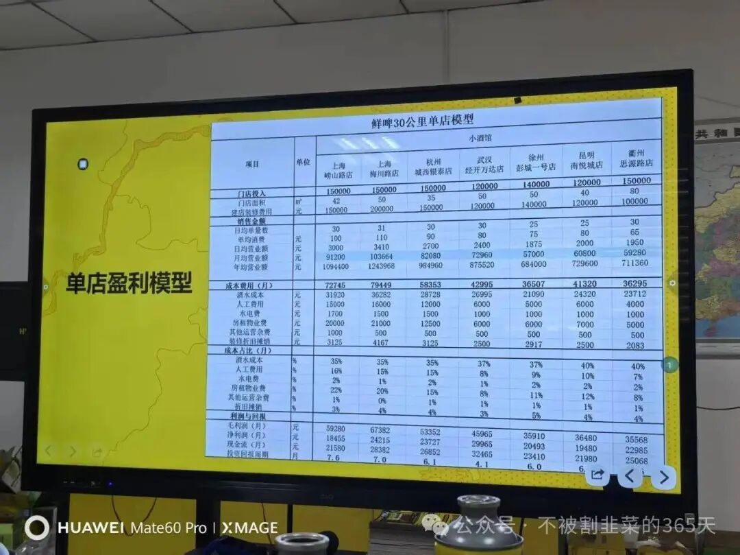據(jù)上述“鮮啤30公里”招商單店模式數(shù)據(jù),門店投入15萬+月成本4-7萬左右,福鹿家門店更小,但裝修、設(shè)備、原料、租金、人力,不會(huì)低太多。