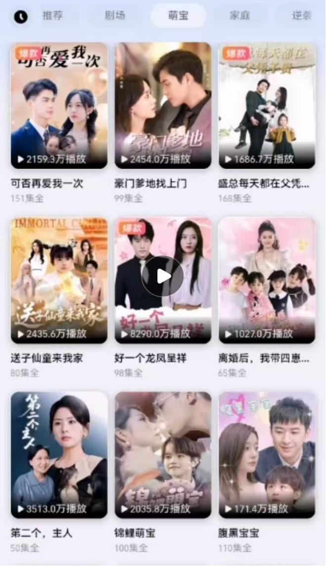進(jìn)入支付寶短劇頁面,會(huì)發(fā)現(xiàn)其內(nèi)容非常全面,不僅擁有萌寶、家庭、逆襲、重生、甜寵、虐戀、打臉虐渣、大女主等熱門短劇主題,而且短劇數(shù)量非常多,在一屏九個(gè)的短劇頁面中,小編多次滑屏,但都沒有翻到底頁。