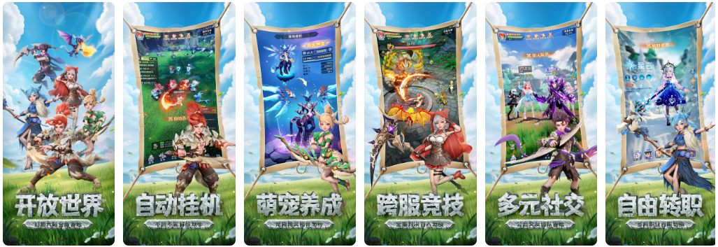 玩法上,仍是以自動戰(zhàn)斗、自動任務(wù)、自動掛機、快速升級、低價禮包為核心循環(huán)的買量型MMO,提供“熾刃、星言、影噬、逐風(fēng)”4大職業(yè)以及5個板塊組成的地圖。此外,養(yǎng)成(寵物抽卡升星、裝備強化、戰(zhàn)力階梯式提升等)、社交(家族副本、結(jié)婚系統(tǒng)等)以及戰(zhàn)斗(世界BOSS、個人BOSS、熒惑之淵、厄神迷宮、啟靈星野等)這些核心元素也一應(yīng)俱全。