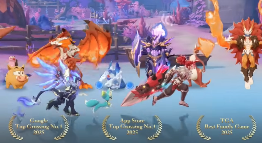 然而在對外宣發(fā)時,該作更愿意強調(diào)“大世界”、“捉寵”、“自由探索”等關(guān)鍵詞,完全弱化放置MMO相關(guān)元素,反而營造出一種開放世界游戲或者帕魯Like產(chǎn)品的感覺。除此之外,不少投放素材還會特意貼靠“《阿凡達》”、“《塞爾達傳說》”、“寶可夢”等知名IP,亦或者仿照某些知名獎項的設(shè)計模版為自身設(shè)計不同的獎項完成質(zhì)量背書。