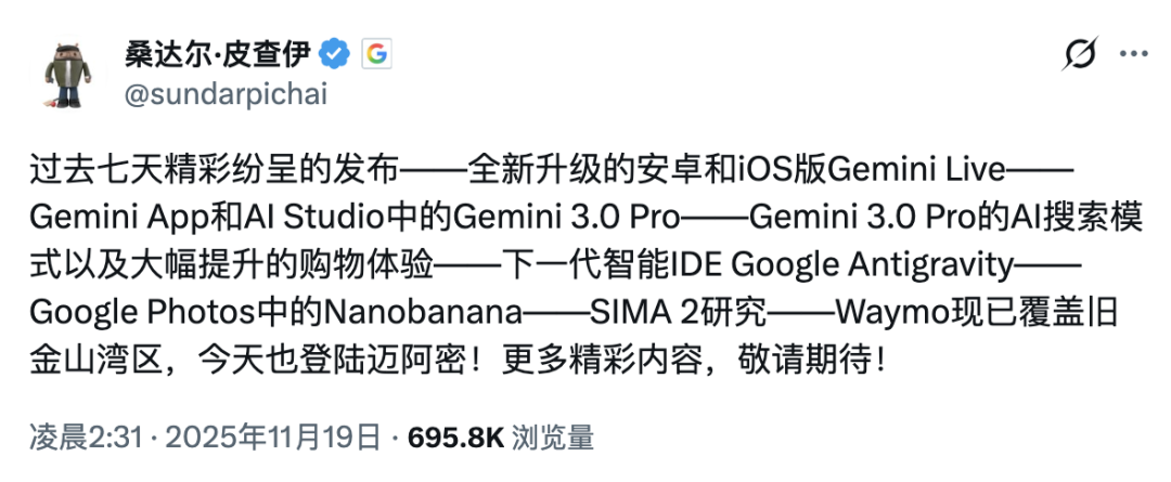 如果用中國的武俠故事來解說當(dāng)下的AI江湖,山姆·奧特曼就像劍走偏峰的東方不敗,是個十足的野心家;黃仁勛像鎮(zhèn)守襄陽、保衛(wèi)GPU的郭靖,自曝每天四點起床,累死累活。而皮查伊絕對是那個沒有殺氣卻大殺四方的掃地僧,他的性情也早已在21年的深耕中,跟谷歌這個硅谷巨獸融為一體。