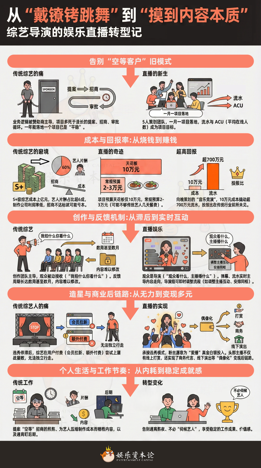 在很大程度上來講,娛樂直播完全規(guī)避掉了綜藝的成本門檻。低成本并非偷工減料,而是源于模式優(yōu)化和“脫下的長衫”。