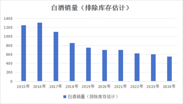 無論用哪種口徑,白酒全國銷量在過去10年中至少掉了50%以上。