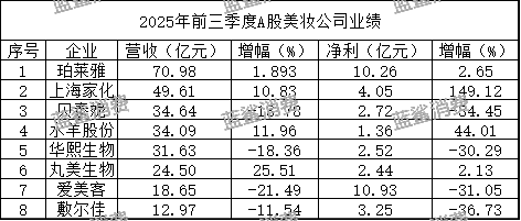 隨著2025年三季報收官,A股上市的美妝企業(yè)陸續(xù)交出成績單,能夠在前三季度保持業(yè)績增長的美妝企業(yè)并不多,不少美妝企業(yè)已經(jīng)逐漸褪去了原來的“光環(huán)”,如今正面臨較大的發(fā)展壓力。