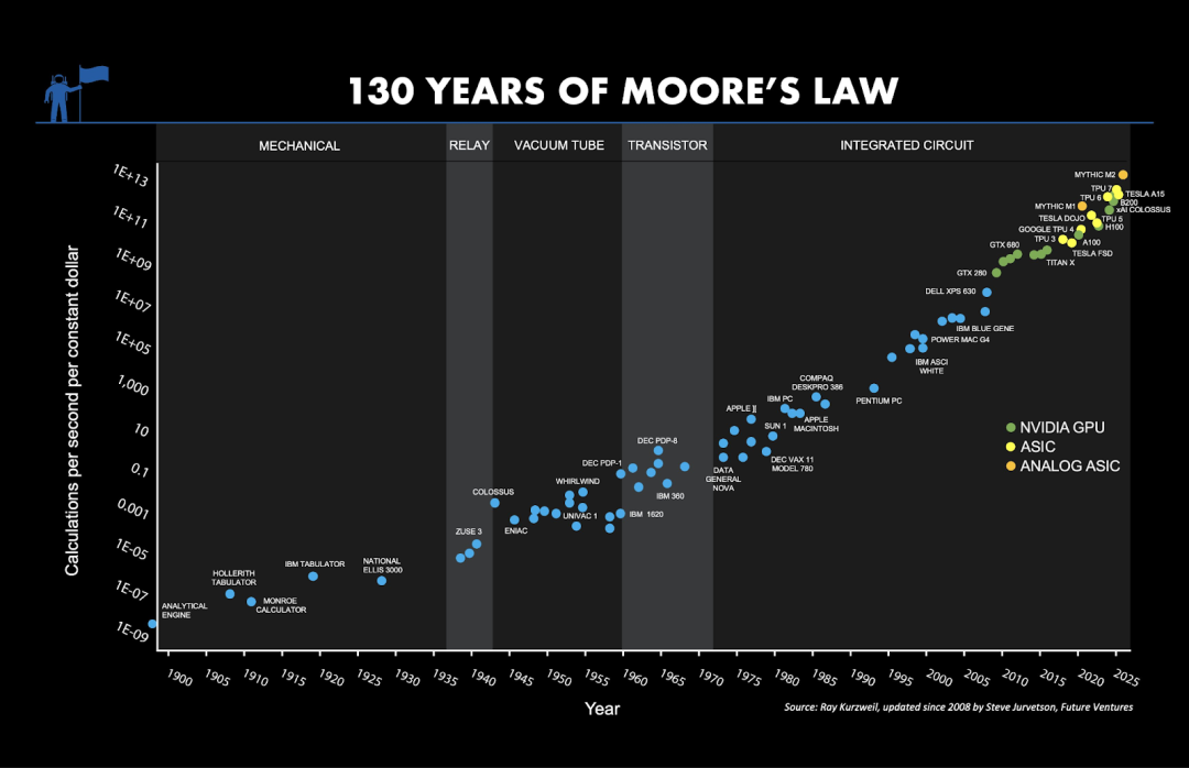 持續(xù)了很多年的摩爾定律,圖片來(lái)源:Unconventional AI
