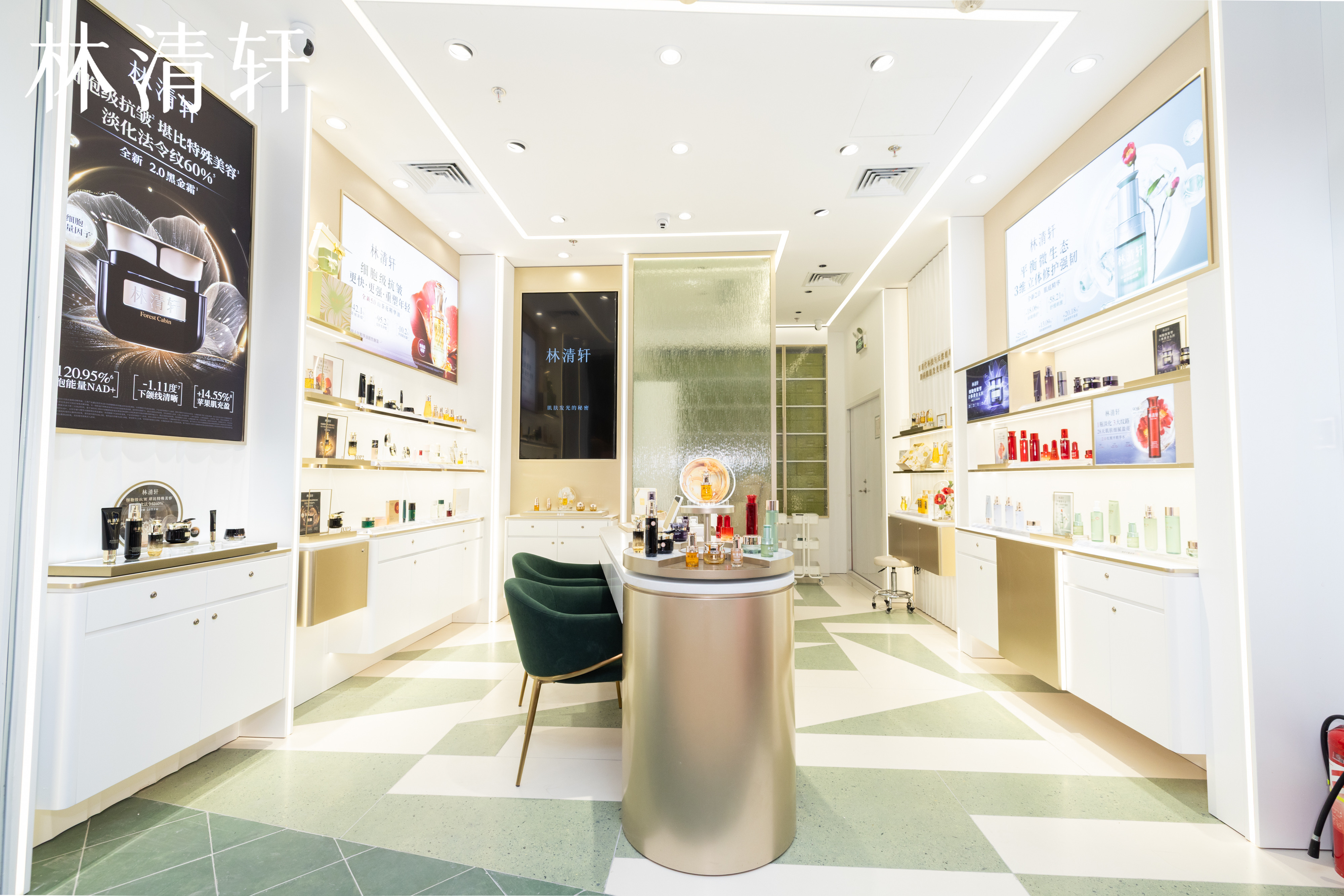 如果說科技是林清軒的“硬實(shí)力”,那么其“線上精準(zhǔn)觸達(dá)+線下沉浸體驗(yàn)+私域深度運(yùn)營”的全域渠道生態(tài),則是品牌持續(xù)增長的關(guān)鍵軟性基礎(chǔ)設(shè)施。目前,林清軒在全國擁有超554家線下門店,其中超95%位于購物商場,直營比例達(dá)66.1%,在國內(nèi)高端護(hù)膚品牌中門店總數(shù)排名第一。