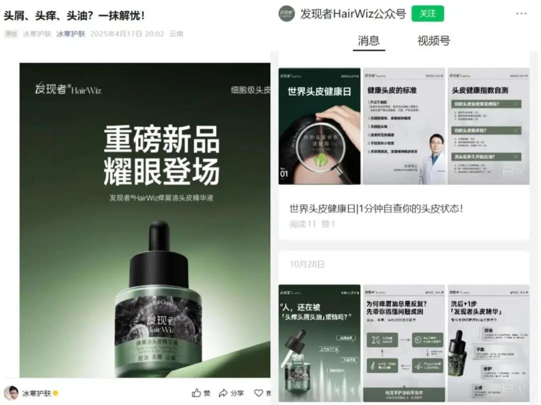 而不管是冰寒的個(gè)人微信公眾號(hào),還是品牌官方旗艦店抑或品牌公眾號(hào),都有冰寒現(xiàn)身科普講解的身影。作為全網(wǎng)粉絲量超百萬(wàn)的護(hù)膚博主,某種程度上來(lái)說(shuō),無(wú)論是個(gè)人背景還是專業(yè)科普,冰寒都給發(fā)現(xiàn)者創(chuàng)造了強(qiáng)大的消費(fèi)者信任背書。