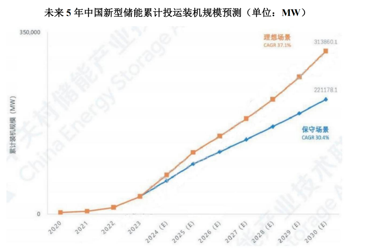 儲(chǔ)能產(chǎn)業(yè)同樣迎來(lái)黃金爆發(fā)期,在政策東風(fēng)與市場(chǎng)需求共振下,中國(guó)新型儲(chǔ)能累計(jì)裝機(jī)規(guī)模在2025年上半年首破100GW,較“十三五”末期激增32倍。根據(jù)中國(guó)能源研究會(huì)儲(chǔ)能專委會(huì)/中關(guān)村儲(chǔ)能產(chǎn)業(yè)技術(shù)聯(lián)盟(CNESA)的預(yù)測(cè),在保守場(chǎng)景下,預(yù)計(jì)2028年我國(guó)新型儲(chǔ)能累計(jì)規(guī)模將達(dá)到168.7GW,2024年—2028年復(fù)合年均增長(zhǎng)率為37.4%;在理想場(chǎng)景下,累計(jì)裝機(jī)規(guī)模和復(fù)合年均增長(zhǎng)率將分別達(dá)到220.9吉瓦和45.0%。