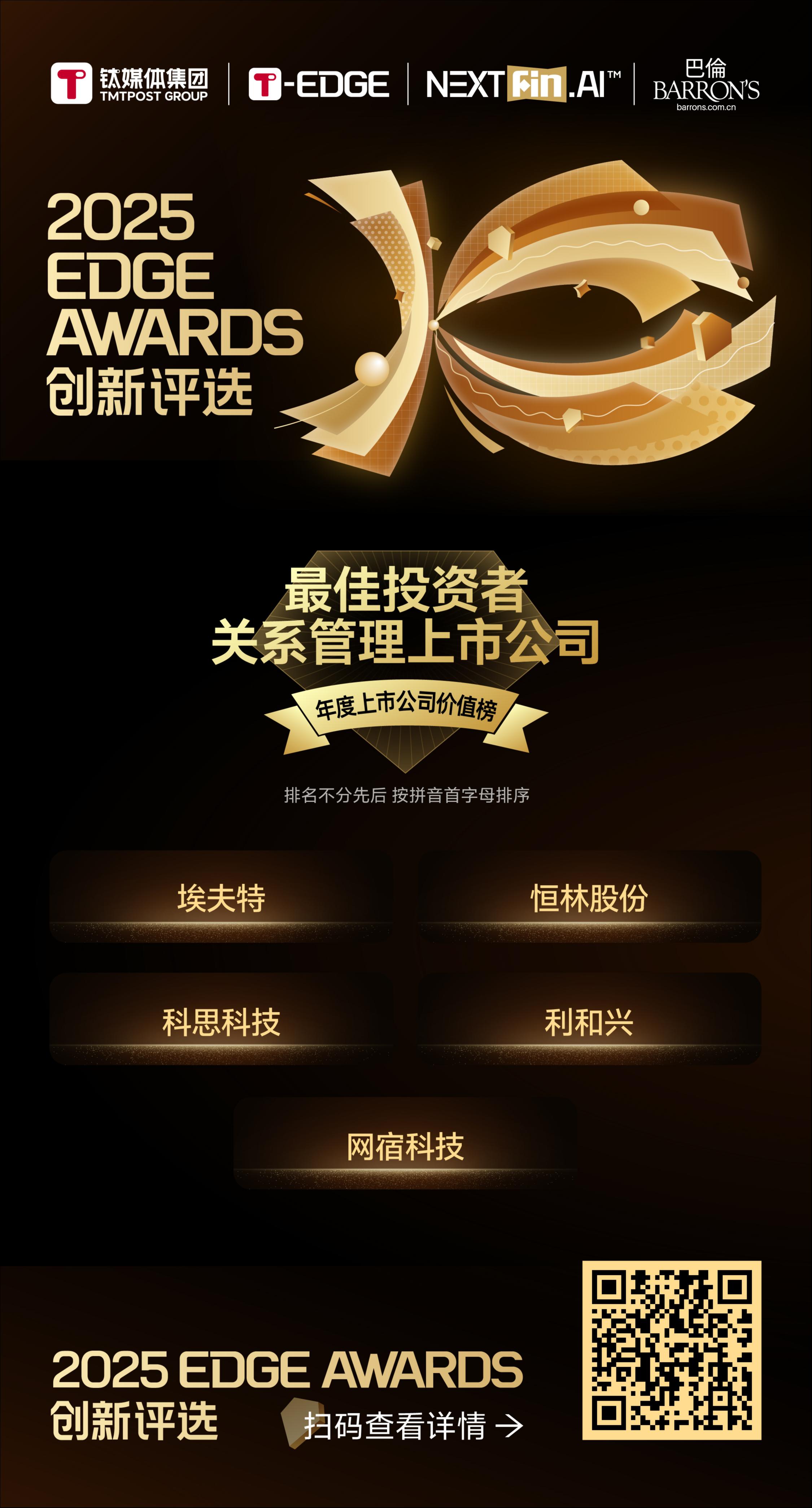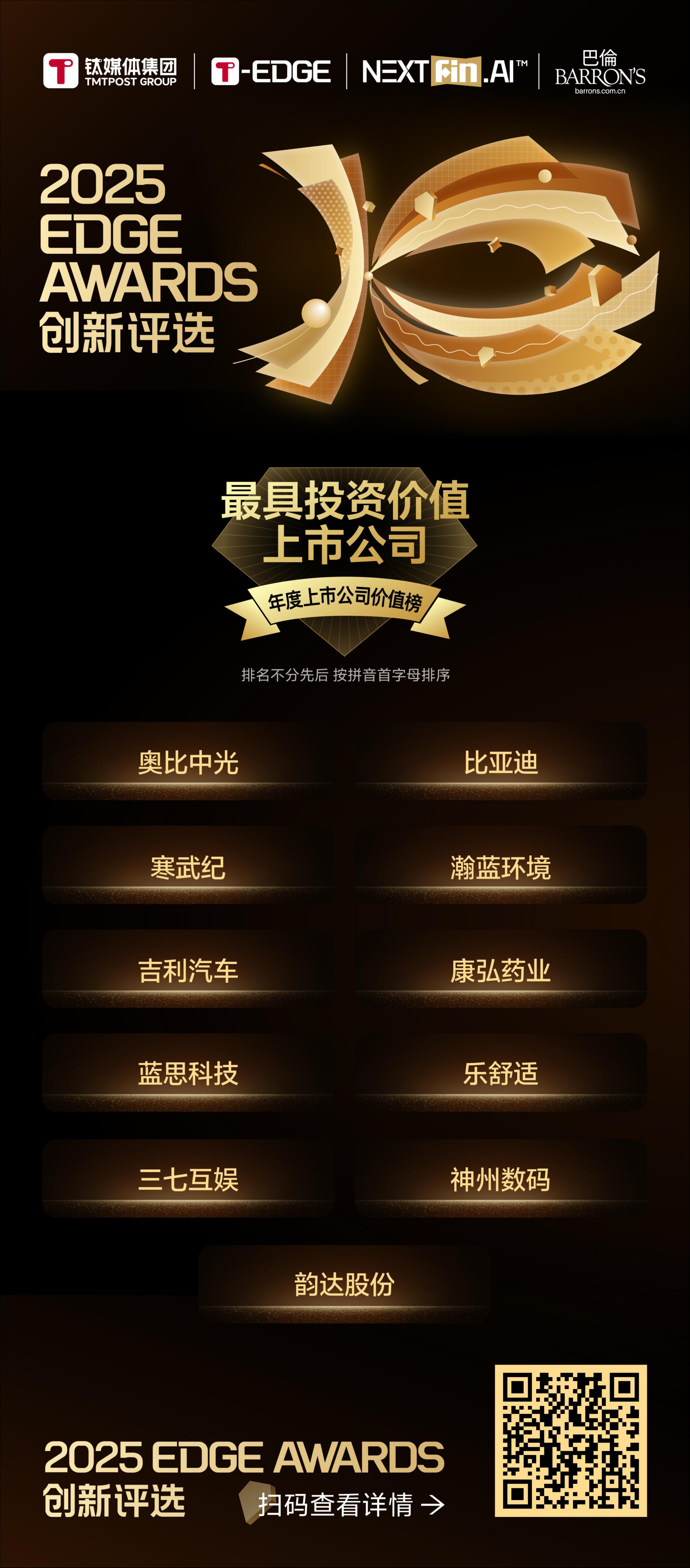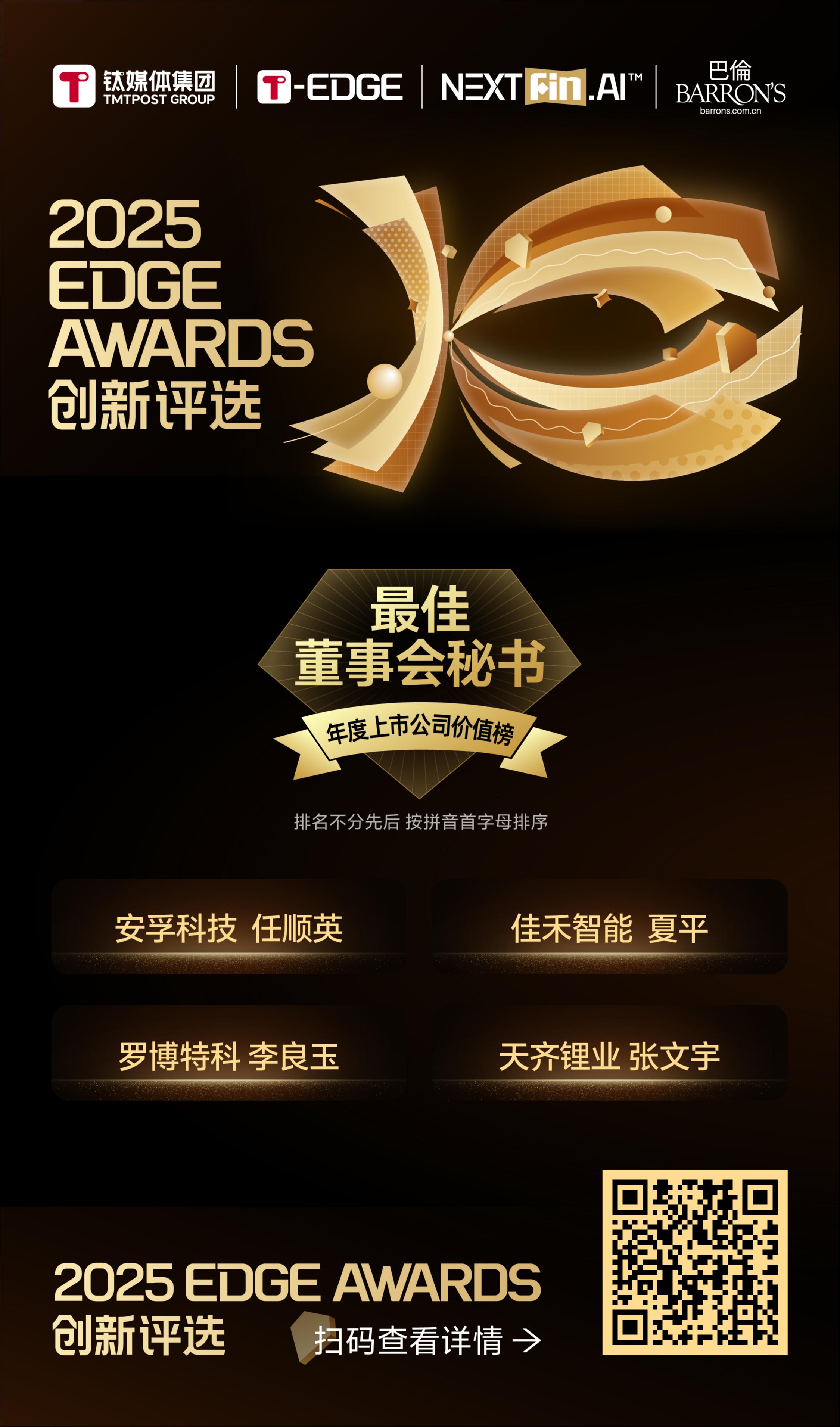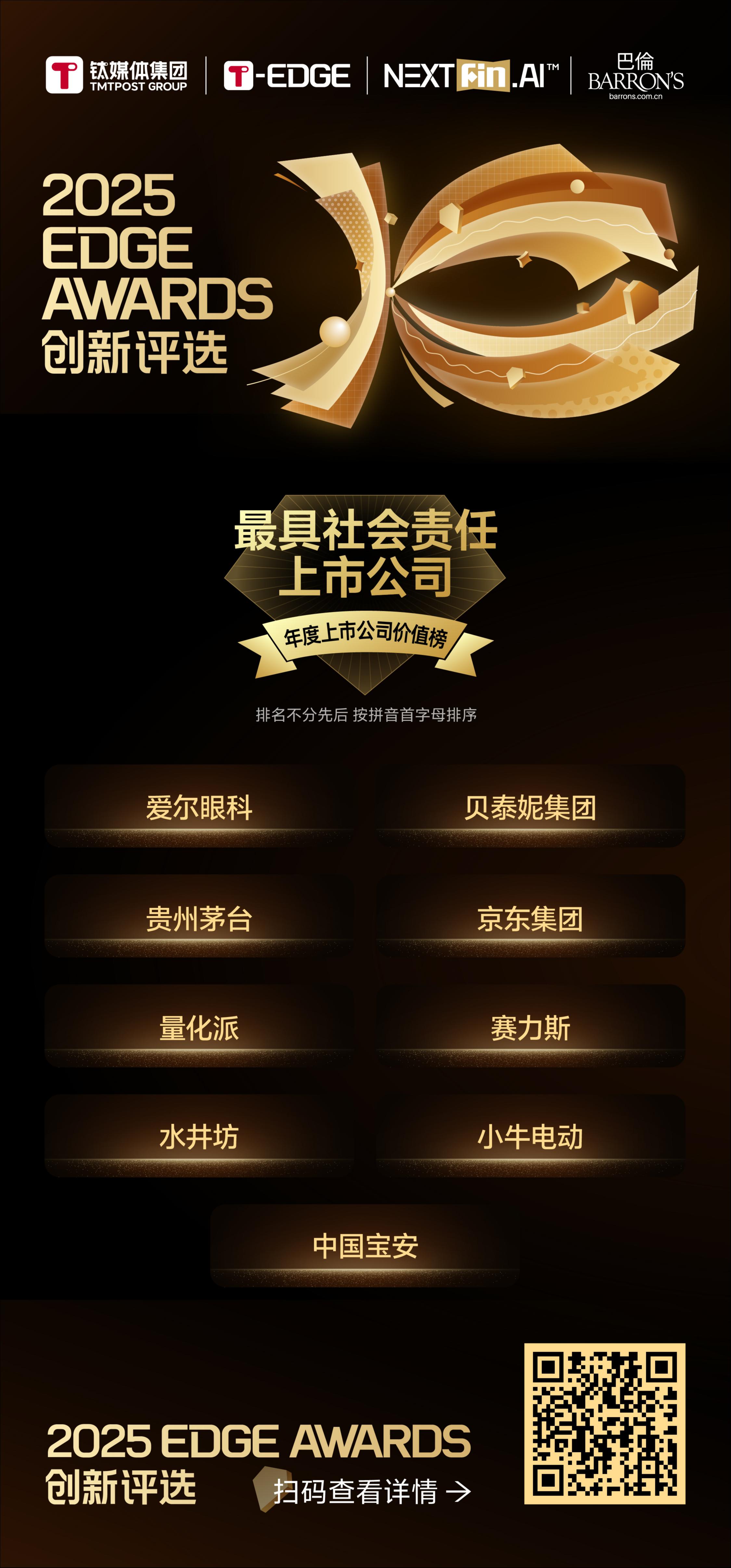 12月8日至21日(北京時(shí)間),鈦媒體集團(tuán)攜手NextFin.AI、巴倫中國(guó)舉辦的2025 T-EDGE 全球?qū)υ捳介_啟。會(huì)上,作為全球前沿科技的長(zhǎng)期觀察者,鈦媒體以更開放的國(guó)際視野,復(fù)盤這一年技術(shù)與產(chǎn)業(yè)的躍遷,致敬那些重新定義時(shí)代邊界的企業(yè),并在此重磅發(fā)布2025 EDGE AWARDS年度上市公司價(jià)值榜。榜單獎(jiǎng)項(xiàng)包括最具社會(huì)責(zé)任上市公司、最佳董事會(huì)秘書、最具投資價(jià)值上市公司、最佳投資者關(guān)系管理上市公司四大獎(jiǎng)項(xiàng),表彰在公司治理、投資價(jià)值、社會(huì)責(zé)任及投資者關(guān)系上表現(xiàn)突出的企業(yè)及管理者。