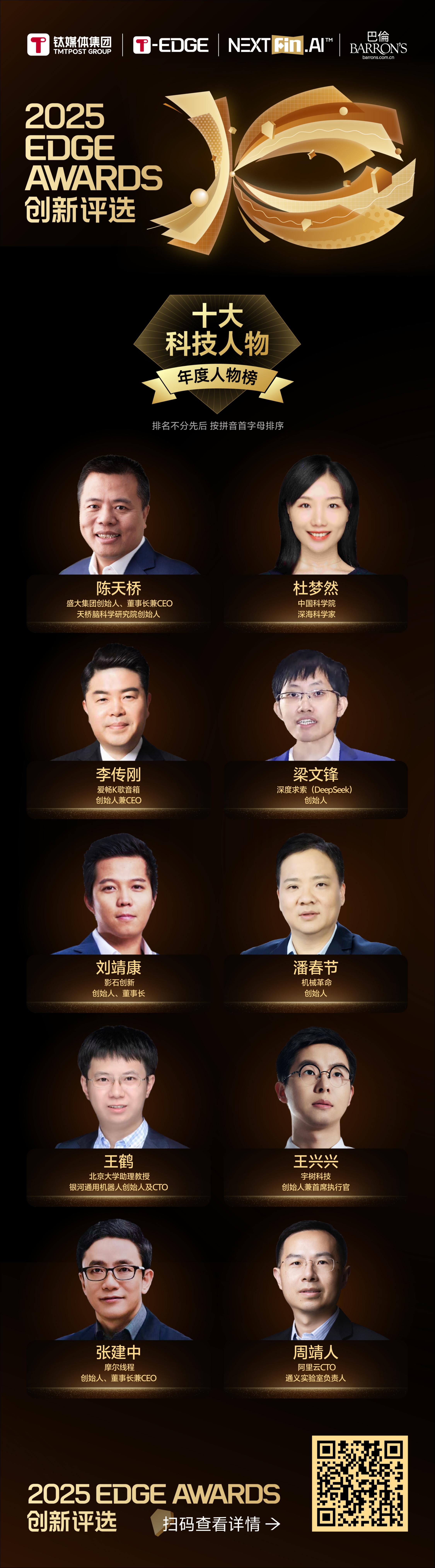 會上,作為全球前沿科技的長期觀察者,鈦媒體以更開放的國際視野,復(fù)盤這一年技術(shù)與產(chǎn)業(yè)的躍遷,致敬那些重新定義時代邊界的企業(yè),并在此重磅發(fā)布2025 EDGE AWARDS年度十大科技人物榜。