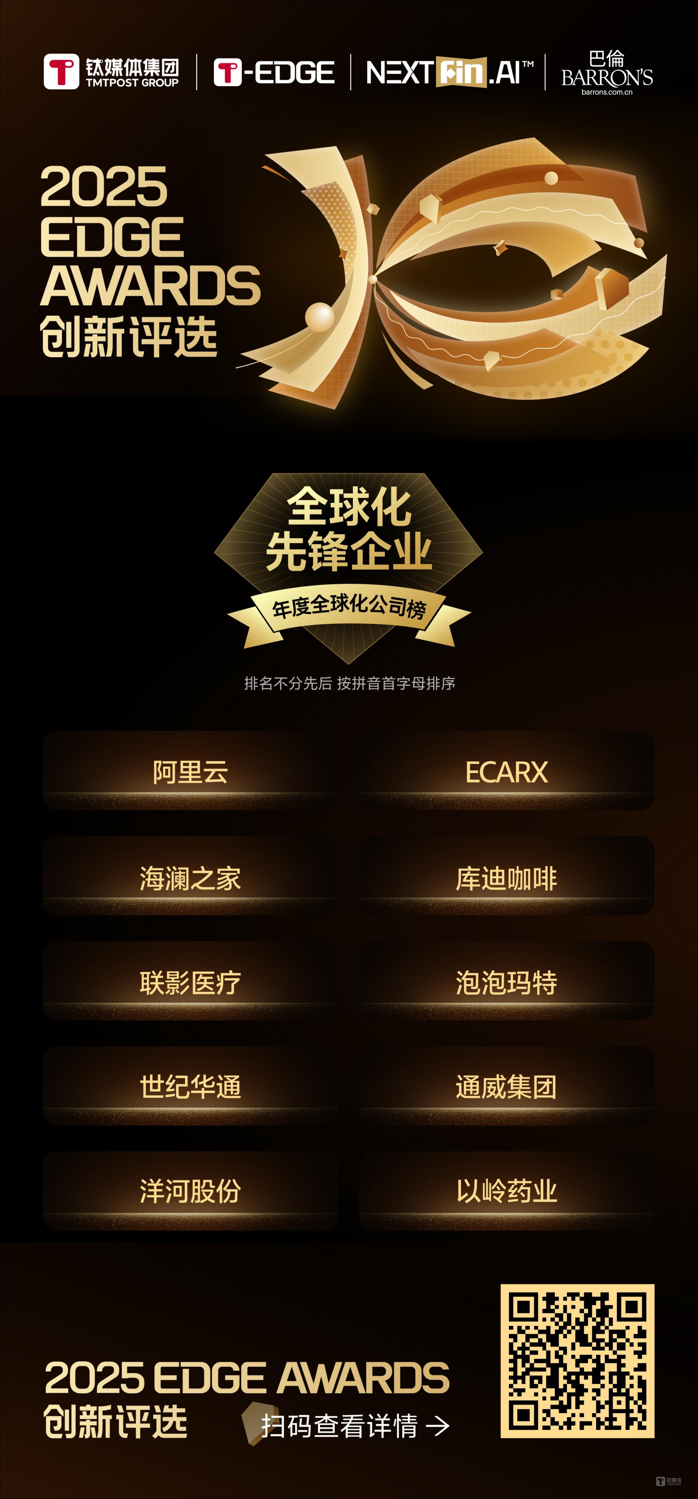 EDGE AWARDS創(chuàng)新評(píng)選始終以“潛在價(jià)值”為核心,著眼于世界前沿科技,是具有權(quán)威性、先鋒性和敏銳挖掘力的全球創(chuàng)新榜單。多年來(lái),EDGE AWARDS創(chuàng)新榜單記錄了許多揚(yáng)帆出海入局全球市場(chǎng)的先鋒企業(yè)。今年,新一批出海探索者又創(chuàng)作出全球化的新篇章。2025 年 EDGE AWARDS 全球創(chuàng)新評(píng)選 ——“年度全球化公司榜” 現(xiàn)已榮耀揭榜,以下是完整獲獎(jiǎng)名單:
