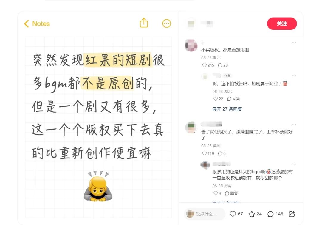 社交平臺上,吐槽短劇劇組“草臺班子”的帖子比比皆是:“著火爆炸戲,導演要看回放,發(fā)現(xiàn)沒按錄制鍵”,“沒有版權(quán)意識,隨便從軟件上扒拉一首歌就作為了BGM”,“我跟導演說你這么拍越軸了,導演問:啥是越軸?”“導演臨開機前連拍攝地方的景都沒去踩過,兩個機位拍完了整部劇”.......