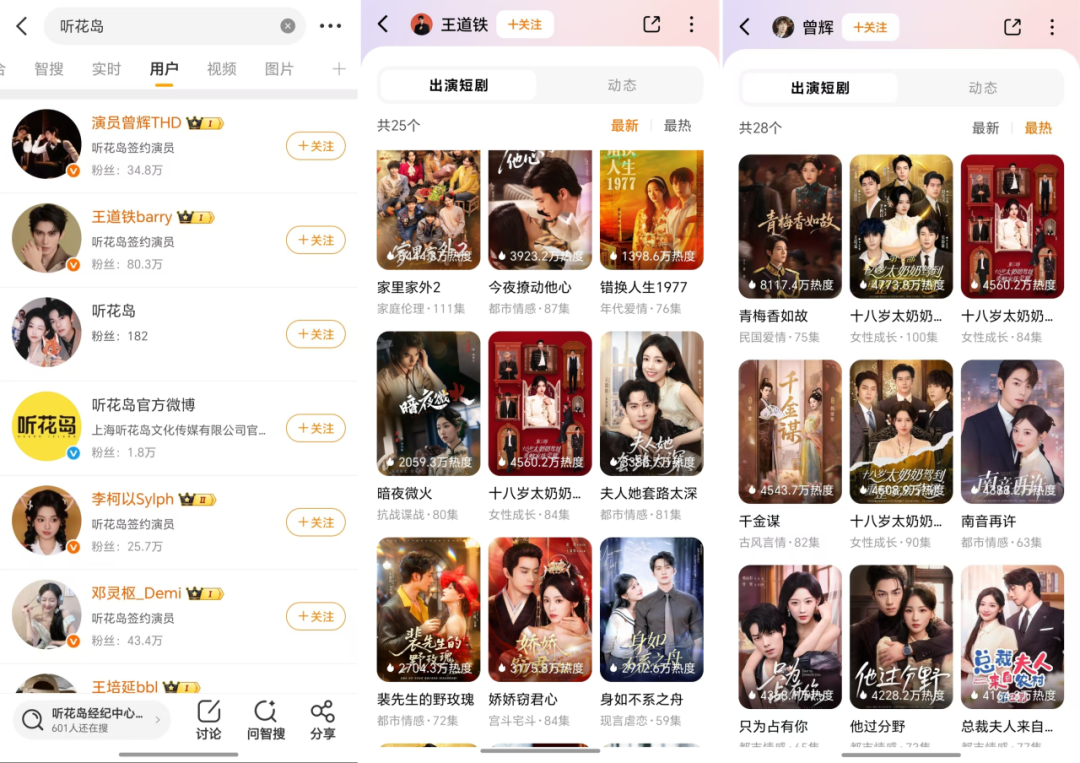 行業(yè)內(nèi)部結(jié)構(gòu)也在發(fā)生深刻變化。越來越多的短劇演員開始簽約正規(guī)影視公司,實現(xiàn)職業(yè)化轉(zhuǎn)型。聽花島等頭部制作方簽約王道鐵、曾輝等演員,打造“以人帶劇”的閉環(huán)模式。