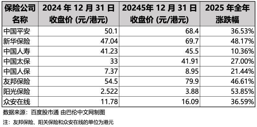 總體來看,2025年保險(xiǎn)股的上漲并非偶然,而是“政策托舉+資負(fù)共振+行業(yè)變革”的必然結(jié)果——政策從“降成本、擴(kuò)空間、促規(guī)范”三個(gè)維度為行業(yè)賦能,資產(chǎn)端受益于權(quán)益市場(chǎng)回暖與險(xiǎn)資入市松綁,負(fù)債端依托分紅險(xiǎn)崛起與新業(yè)務(wù)價(jià)值增長(zhǎng),基本面持續(xù)改善,推動(dòng)股價(jià)走出四年新高。對(duì)投資者而言,2025年是保險(xiǎn)股“價(jià)值修復(fù)的起點(diǎn)”,2026年資負(fù)共振的邏輯將持續(xù)強(qiáng)化,行業(yè)有望進(jìn)入“估值+業(yè)績(jī)”雙擊的黃金發(fā)展期。(作者|李婧瀅,編輯|劉洋雪)
