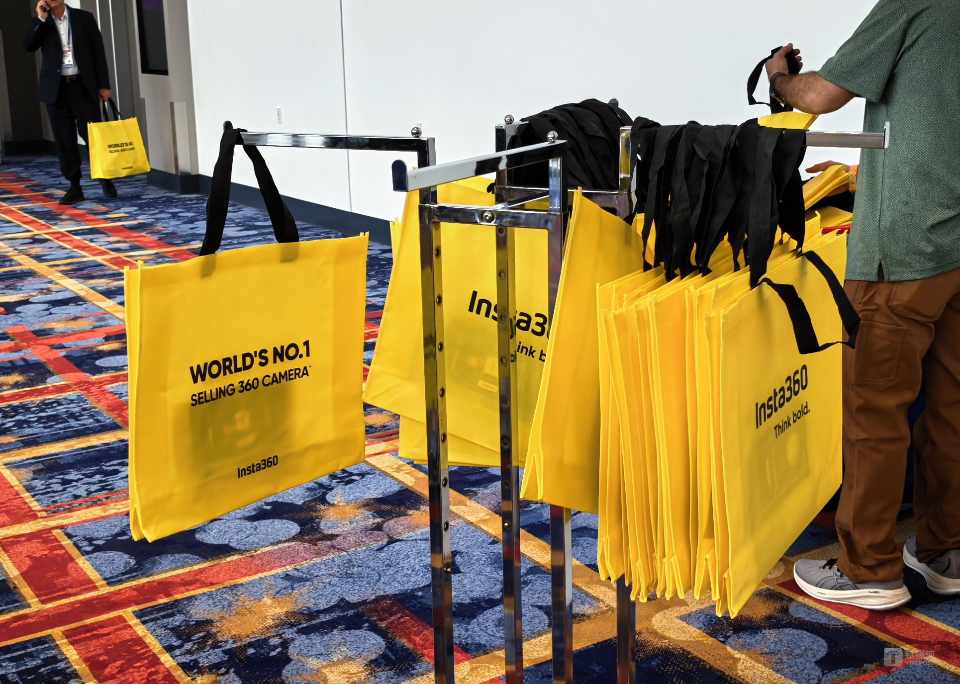 早在多年前,CES就成了中美企業(yè)之間的直接對抗,不僅參展數(shù)量“勢均力敵”,在垂直行業(yè)的引領(lǐng)上也是各有勝負(fù)。有一點(diǎn)需要注意的是,往年CES贈送的手提袋都是尼康贊助的,今年雖然依舊是黃色手提袋,但贊助商則換成了中國企業(yè)影石Insta360,包更大更能裝,四天的時間里成了流動的廣告牌。
