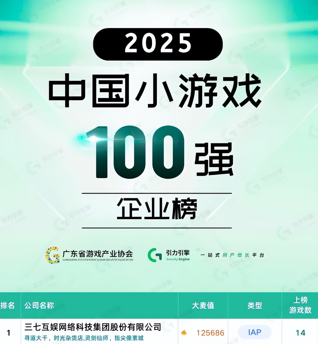 小游戲賽道的爆發(fā)式增長,吸引了大批實力大廠入局,如今超 70% 的上市游戲公司都已投身其中。憑借著雄厚的研發(fā)資源和突出的運營能力,這批廠商通過“精品化+雙端運營”的方式,在市場中展現(xiàn)出碾壓級的霸榜和吸金實力,更在推動小游戲品質(zhì)升級的進程中發(fā)揮了關鍵引領作用,三七互娛與點點互動便是其中的典型代表。