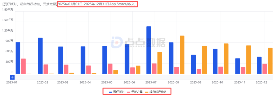 上線4日游戲總流水預(yù)估超343萬元,將該成績與同一時間市場上其他派對游戲相比較,《蛋仔派對》(522萬)與《超自然行動組》(493萬)的成績都略高于前者,《元夢之星》以148萬排名最后。