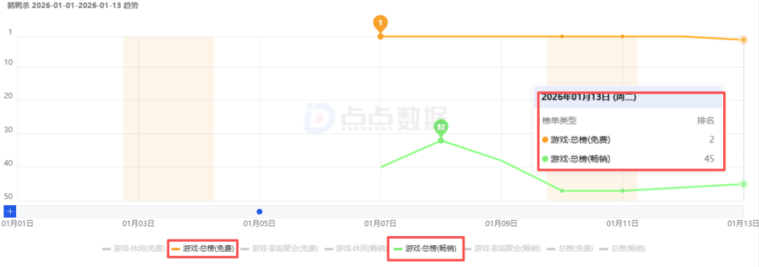 若橫向?qū)Ρ壬鲜鲆呀?jīng)公測的重點新游,最近引發(fā)討論度最高的肯定是《鵝鴨殺》,下文中點點出海將詳細分析這款新游的市場表現(xiàn)。