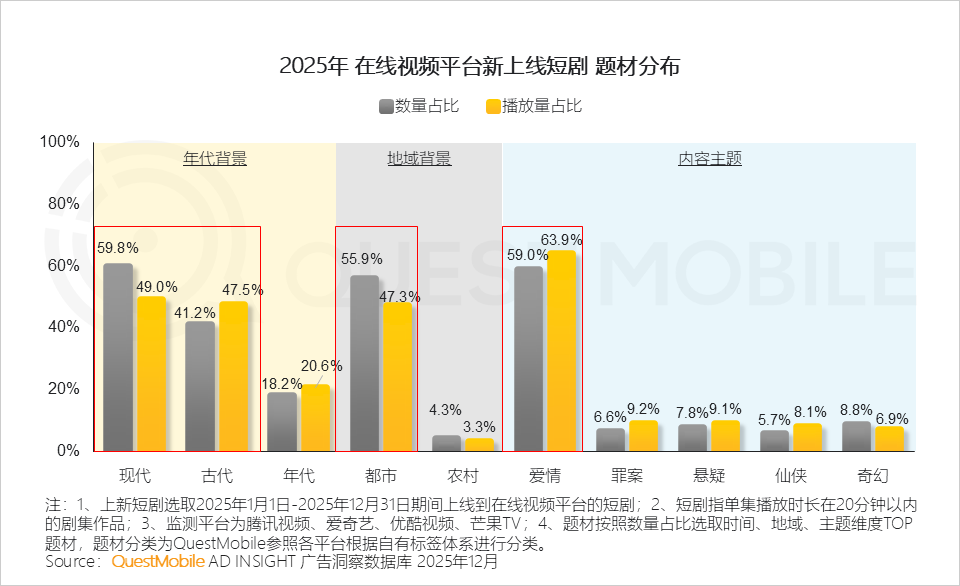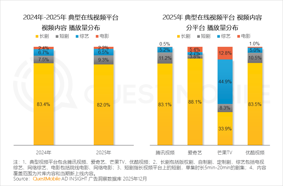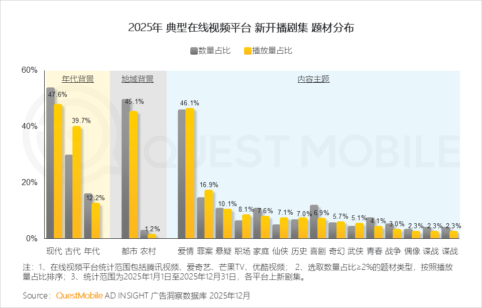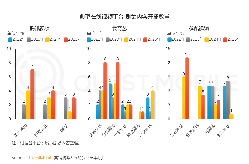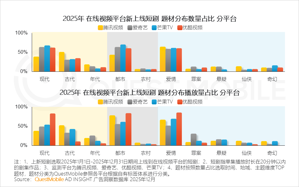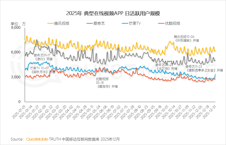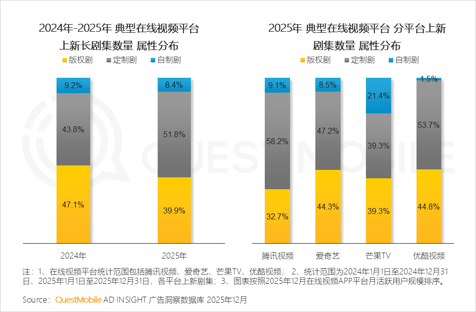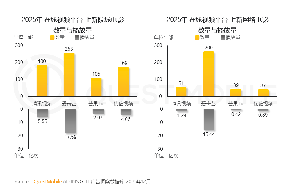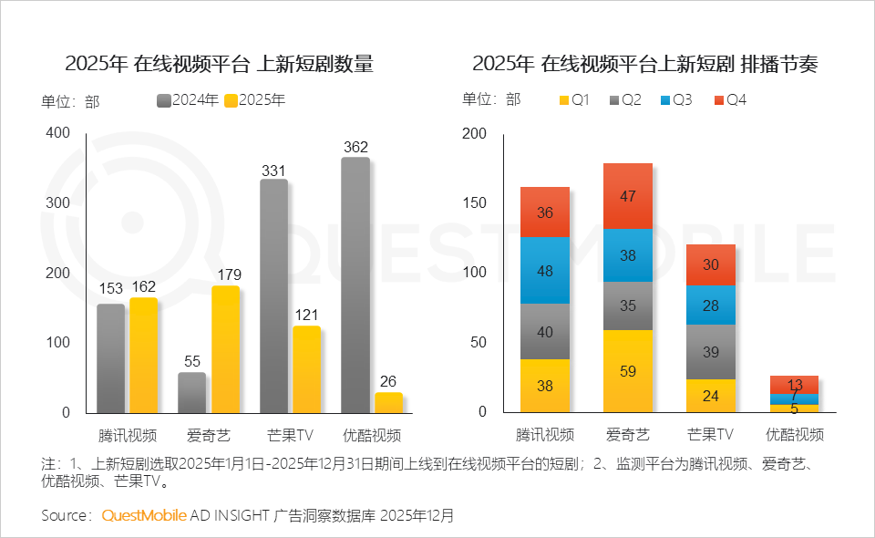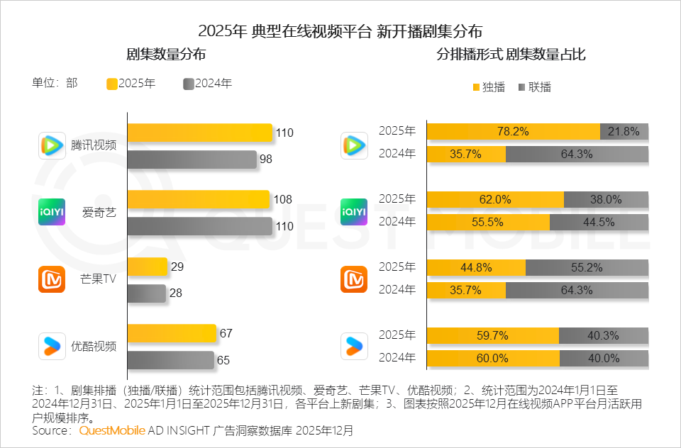 QuestMobile數(shù)據(jù)顯示,2025年騰訊視頻、愛(ài)奇藝、芒果TV、優(yōu)酷視頻四大視頻平臺(tái),共上新268部劇集,同比2024年增長(zhǎng)11.7%。