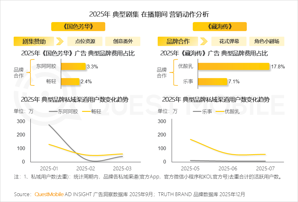 2.4 高熱度劇集開播前期,吸引眾多廣告商合作,也為劇集帶來(lái)預(yù)熱聲量,同時(shí)在播放期間,廣告主通過(guò)貼片/標(biāo)版、彈幕、衍生劇場(chǎng)等形式豐富營(yíng)銷互動(dòng)玩法
