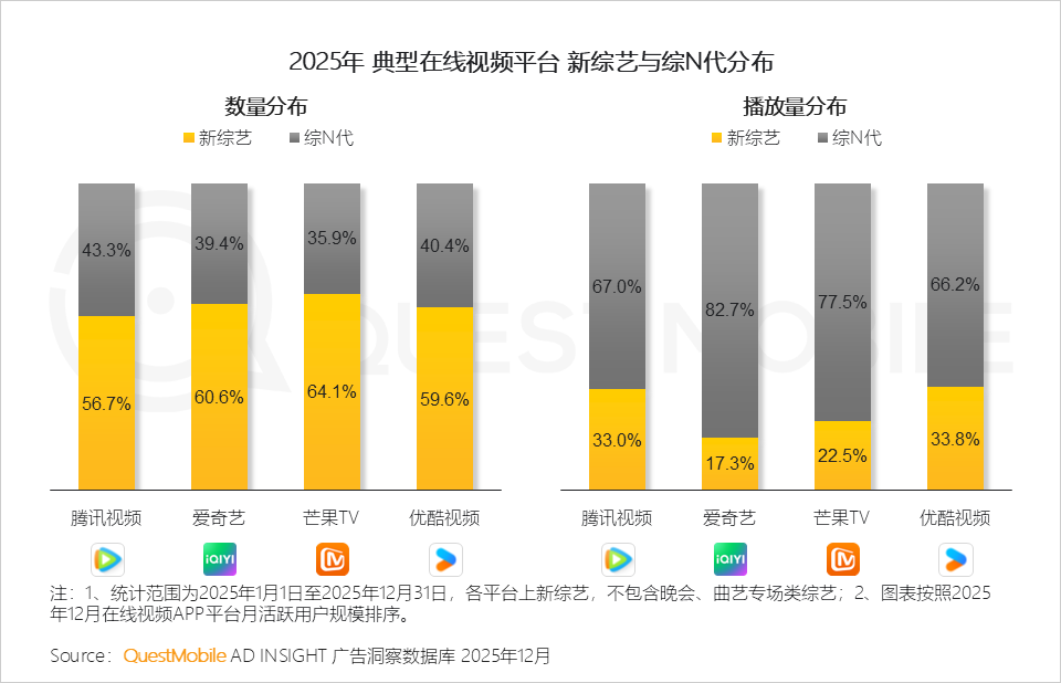 1.2 從上線數(shù)量上看,新綜藝仍在持續(xù)探索,但綜N代依舊占據(jù)播放量的主導(dǎo)地位