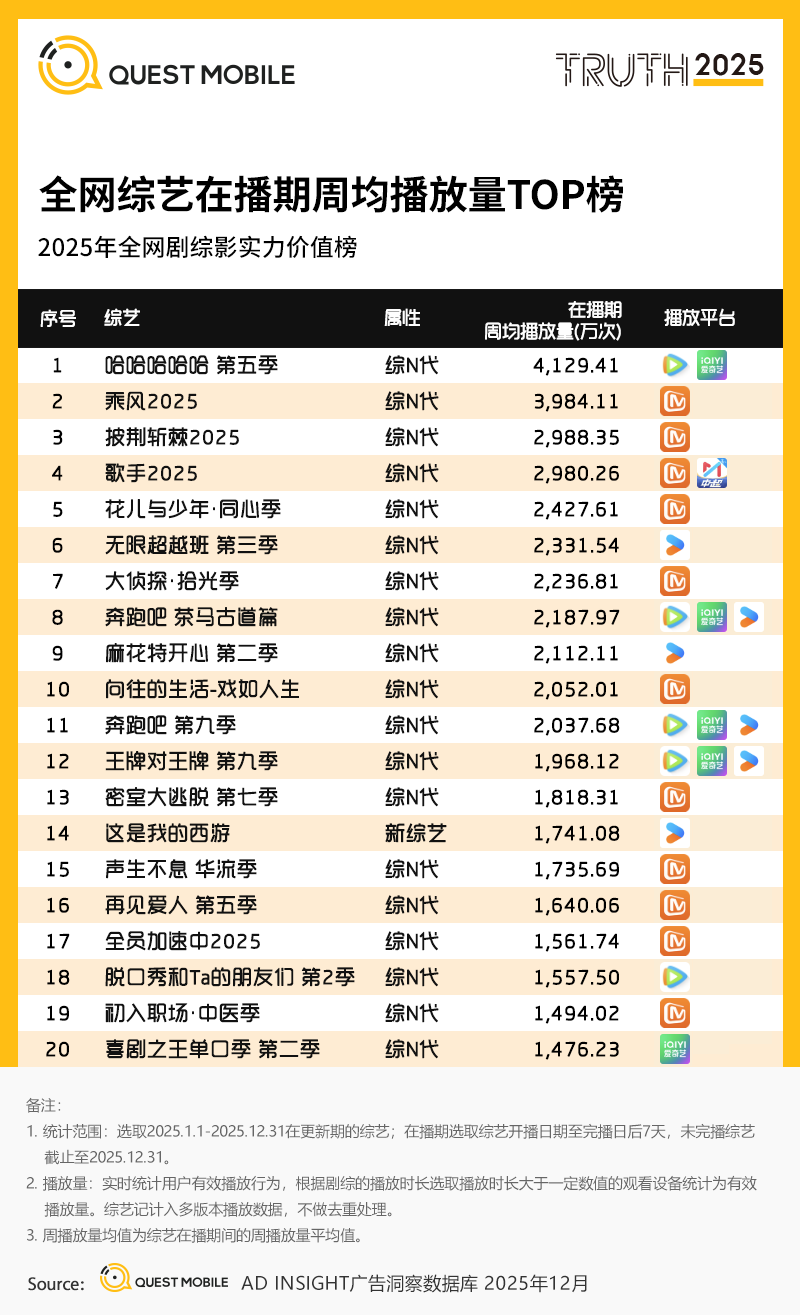 2025年全網(wǎng)劇綜影實(shí)力價(jià)值榜
