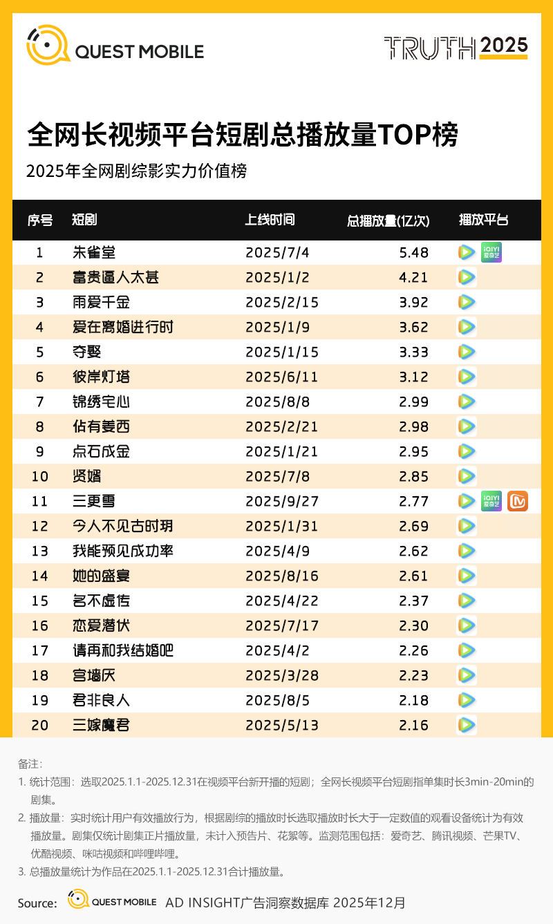 5、全網(wǎng)長(zhǎng)視頻平臺(tái)短劇總播放量TOP榜
