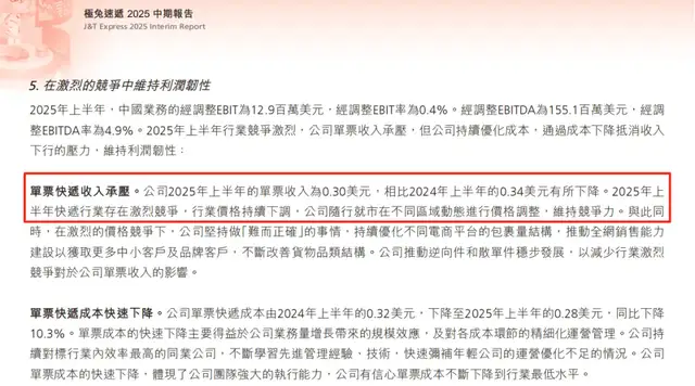 2025年上半年,極兔中國市場的單票收入僅為0.3美元左右,而單票成本則接近這一水平,利潤空間微乎其微。