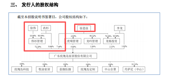 玫瑰島成立于2006年,截至招股說明書簽署日,肖杉直接持有玫瑰島股份比例為8.66%,偉杉管理直接持有玫瑰島股份比例為72.20%,肖杉、徐偉分別持有偉杉管理90.00%、10.00%的股權(quán),因此,徐偉、肖杉直接或間接控制公司股東會(huì)表決權(quán)比例合計(jì)為80.86%。同時(shí),徐思佳直接或間接控制玫瑰島股東會(huì)表決權(quán)比例合計(jì)為 11.41%。而徐偉、肖杉二人為夫妻關(guān)系,徐思佳系徐偉、肖杉的女兒,因此上述三人共同控制玫瑰島股東會(huì)表決權(quán)比例合計(jì)為92.27%,為公司共同實(shí)際控制人。