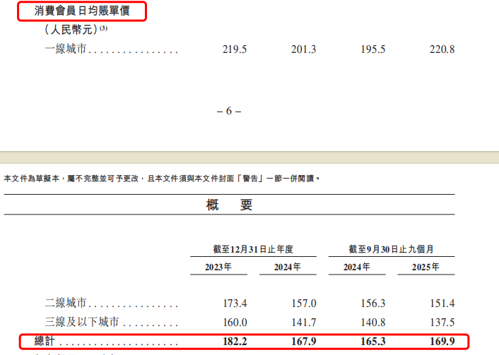 盡管會員消費整體高企,但主要靠一線城市人群撐場。二、三線城市門店的會員日均賬單價,分別從2023年的173.4元、160元,下降至2025年前三季度的151.4元、137.5元。