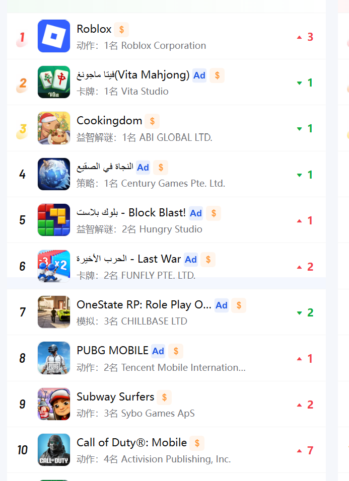 沙特實(shí)時(shí)游戲榜中中國廠商出品游戲占比超三分之一