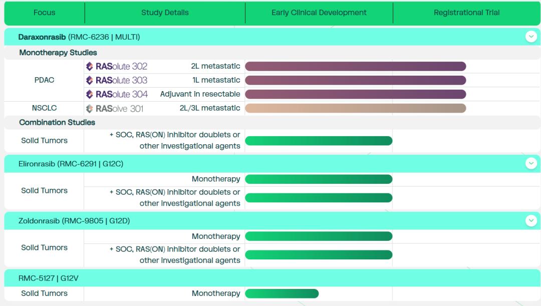 Revolution的價(jià)值遠(yuǎn)不止Daraxonrasib這一款“明星管線(xiàn)”。不同于行業(yè)內(nèi)多數(shù)企業(yè)聚焦單一RAS突變亞型的單點(diǎn)突破模式,公司以RAS(ON)抑制技術(shù)為核心,構(gòu)建了覆蓋多突變亞型的完整管線(xiàn)矩陣。