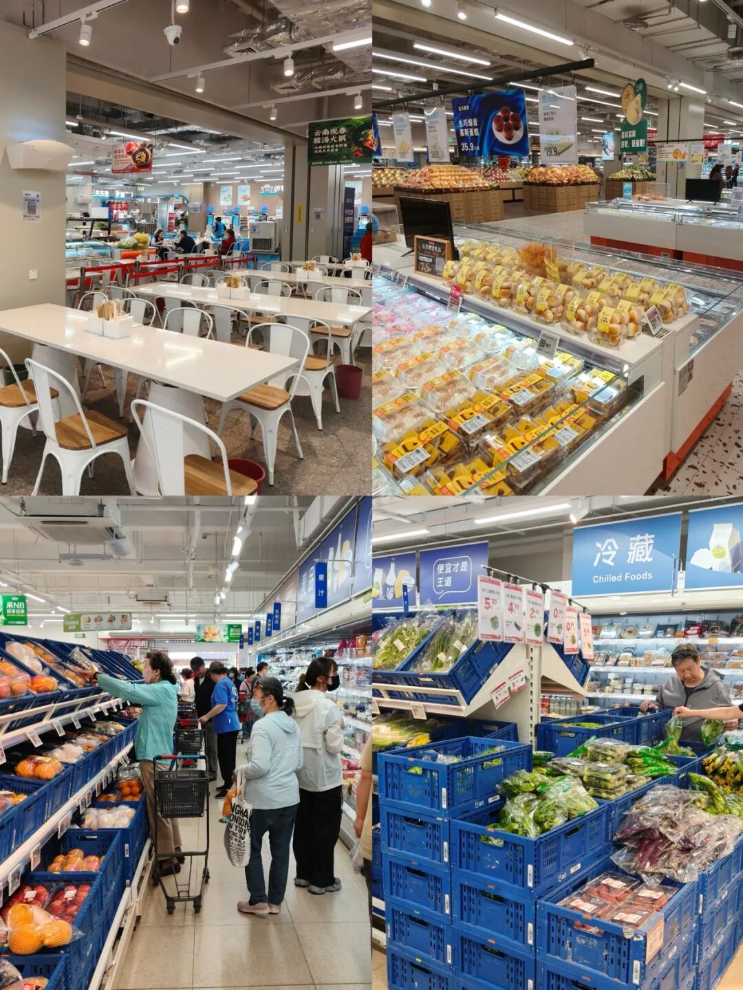 圖:上圖為盒馬鮮生店內(nèi),下圖為超盒算NB店內(nèi)