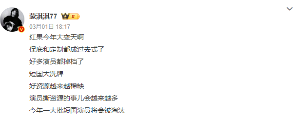 第三,短劇演員就業(yè)寒冬。資本退場、項目停擺最直觀的影響就是臺前的從業(yè)者進入寒冬,有業(yè)內(nèi)編劇實名爆料不少短劇演員出現(xiàn)掉檔,預計今年將會有一大批短劇演員被淘汰。