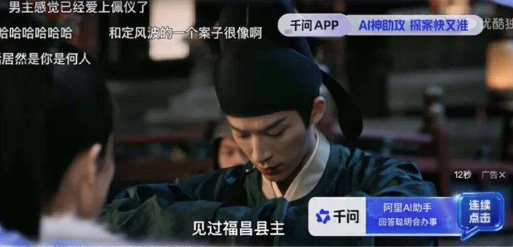 優(yōu)酷的S+《唐宮奇案》將片頭黃金廣告位留給了千問,騰訊視頻熱劇《小城大事》為元寶安排了15秒貼片廣告,愛奇藝則借助智能VideoIn廣告技術(shù)在《大生意人》中為汾酒實(shí)現(xiàn)了“清朝場景下的現(xiàn)代品牌植入”……